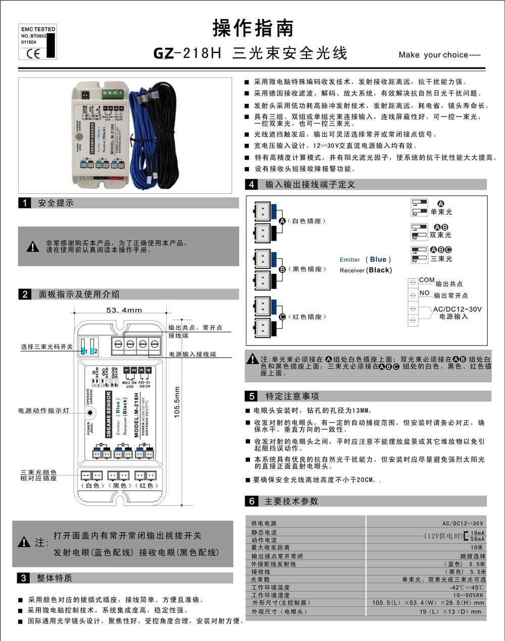 自动门三束光安全光线218H